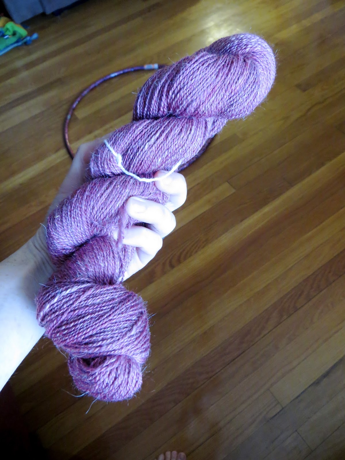 Oh, and I still knit and spin. Here's (a pretty terrible, pre-finishing) photo of some yarn I just made! It's merino blended with mohair, and I think it would make a great weaving weft.